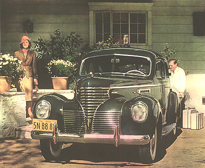 "It's simply swell!"DeSoto said that Myrna Loy loved her new DeSoto. Why not? The massive streamliner featured a new column-mount gear shifter, fresh styling, and 23 cubic feet of trunk space. Image courtesy of John Nosol. |
